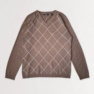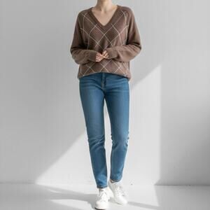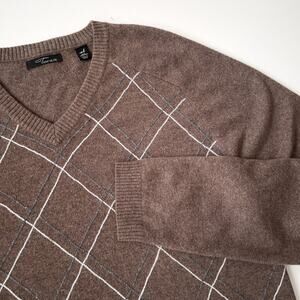 Argyle 100% Cashmere Sweater XL Brown Academia Quiet Luxury Preppy Minimalist