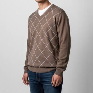 Argyle 100% Cashmere Sweater Academia Quiet Luxury Preppy Minimalist Taupe Brown