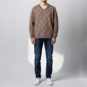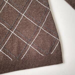 Argyle 100% Cashmere Sweater XL Brown Academia Quiet Luxury Preppy Minimalist