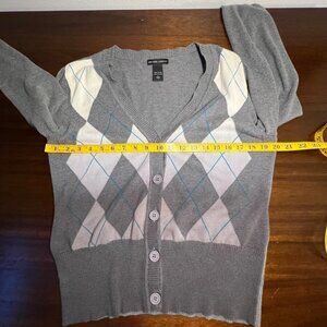Excellent condition. Interesting coloration argyle pattern. Buttons on the left so this is a women's cardigan. Size large.