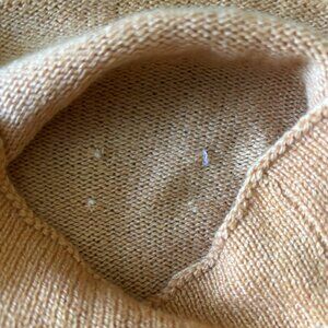 Minor pull on sleeve, see image. Tag gently cut out to avoid itching.