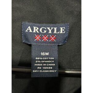This Argyle button-up shirt in size 16W offers a blend of style and comfort. Its black color and subtle red plaid accents add a touch of elegance. Crafted from cotton with a hint of spandex for slight stretch, it's ideal for professional settings, providing a sophisticated look.