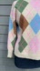 Stylish argyle pattern 100% cashmere soft sweater featuring pink, green, and blue diamonds. Perfect for a cozy and fashionable look.