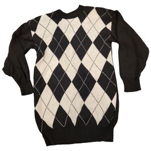 90s Argyle Sweater by Cristin Steven's Black and White 100% Cotton sz M. No size in sweater. Size based on measurements. Tunic length. 3/4 sleeves.