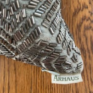 Add some glam and sparkle to your holiday pillows with this Arhaus beaded silver pillow.