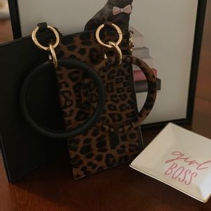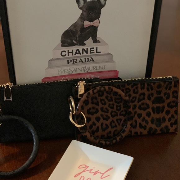 “Ari” is a bracelet clutch that comes in black and leopard. Inside the clutch are two compartments that can hold money and or cards. Grab “Ari” and go!!!
