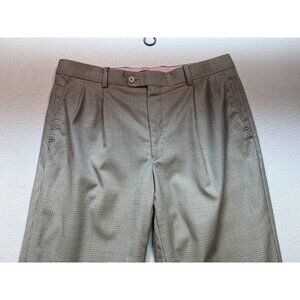 Ari8to Eighteen Mens Wool Pleated Dress Pants Cuffed Hem Sz 36 Beige Houndstooth
