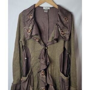 Aria A- Women's Boho ruffle cardigan- Green toned color- size Large