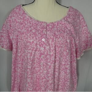 Aria Collection Cotton Nightgown 2X Pink White Flowers Plus Size Short Sleeves