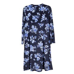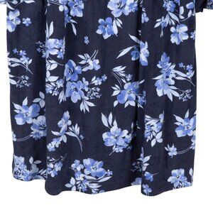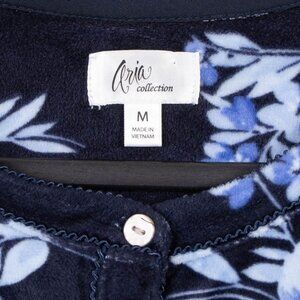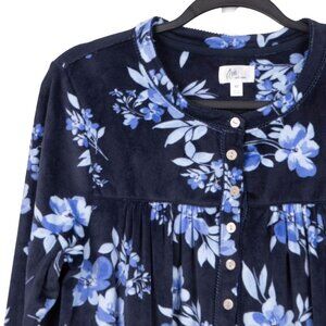 Aria Collection Fleece Nightgown M Womens Floral Navy Blue Long Sleeve Buttons