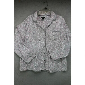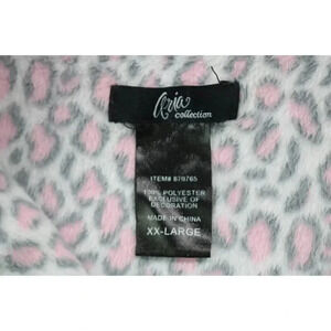 This is a Aria Collection Women's Fleece Pajama Set that is Gray, Pink, and White. It is a size XXL. It is 100% Polyester. The top buttons down and measures: Armpit to armpit-25.5" and the length is 25". The pants have a drawstring and pockets. They have a 39" Waist and the inseam measures 27". They are in great Condition.