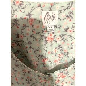 Aria Collection Womens XL Nightgown Long Sleeve Mint Green Floral Button Front. Good clean pre-owned condition