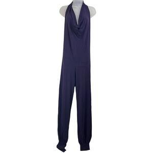 Aria Lattner Halter Drape Jumpsuit Womens L Large Organic Bamboo Cotton Purple