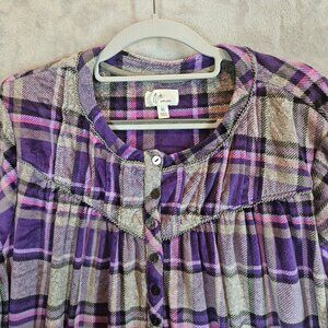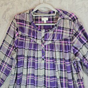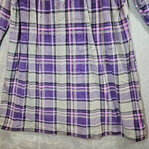 Aria Purple Plaid Nightgown Long Sleeve Button Womens 1X Lounge Wear soft fleece
