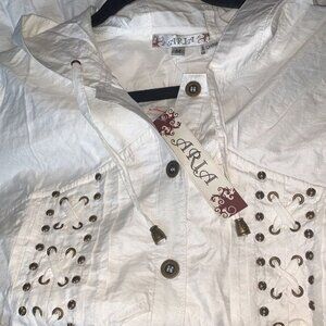 Aria White Hooded Button-Up Tunic With Lace-Up Detail Medium
