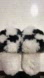 Soft and fluffy slippers in black and white. Ideal for comfort at home.