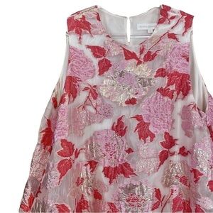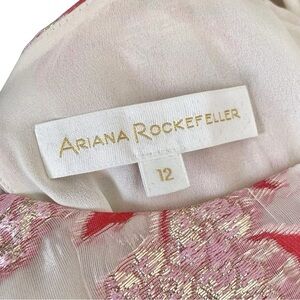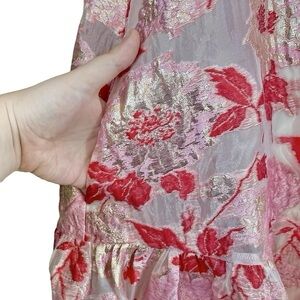 Ariana Rockefeller Metallic Floral Ruffle Hem Mini Dress Pink Red Gold Size 12
