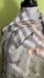 Our scarf is made of 93% polyester and 7% rayon. She is gray with beautiful gold accents and new tags. Length 70” and width 27”