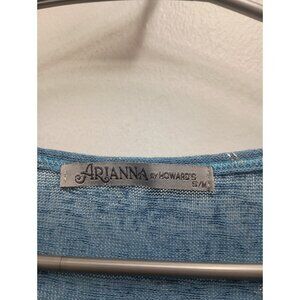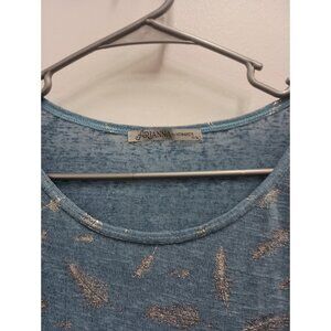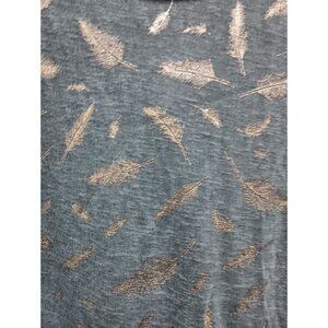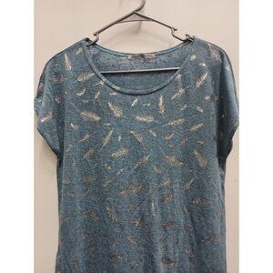 Arianna By Howards Womens BOHO Top S/M Teal Leaf Print Metallic Short Sleeve