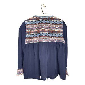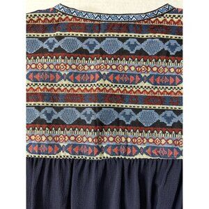Arianna By Howards Womens Smock Top Tribal Print Navy Open Front Small Medium