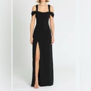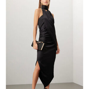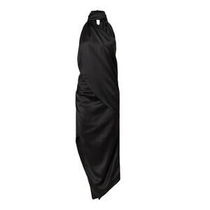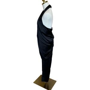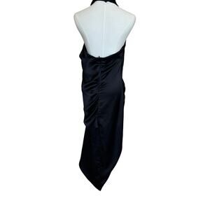 Arias Black Satin Halter Gown Size 2 Cocktail Asymmetric Ruched Maxi Dress $850