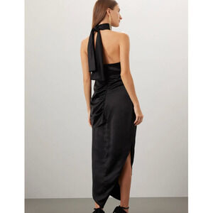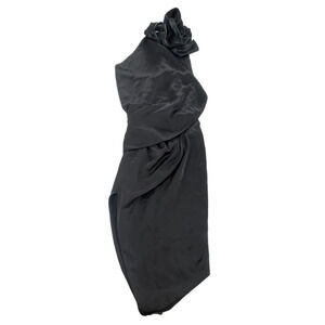 Arias Dress Womens 6 Black Crepe Asymmetrical Drapey Halter Midi Formal Cocktail