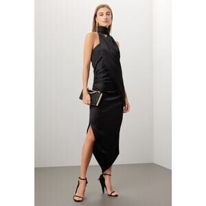 Arias New York Black Asymmetrical Halter Tie Neck Sleeveless Cocktail Dress Sz 4