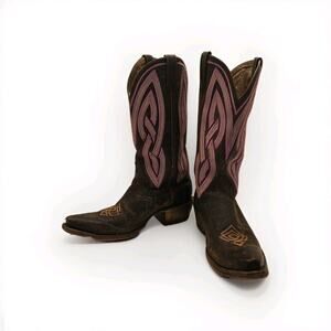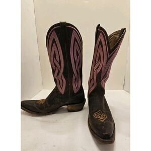 Rare! Ariat 10011924 Riata Sassy Brown Pink Embroidered Leather Western Boots SZ 8.5B.