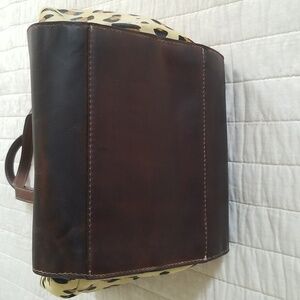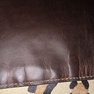This bag has been used but has no rips or tears, only regular leather scuffing(SEE PHOTOS). That is normal on all other items, and the leather is slightly broken in, so it is not brand new. slight wear on the cow hide (see last photo). It's small andnonly on that side and not very noticeable but common on these types of items. Please reference every single picture.