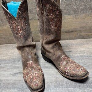 Ariat Ardent Brown Leather Floral Embroidered Western Boots Women's Size 8