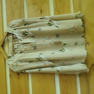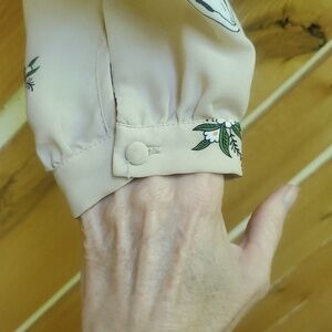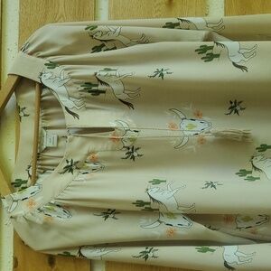 EUC...Chic beige blouse with a bold cactus and bull pattern. Perfect for casual or office wear. Check out all pics for details and approximate measurements.