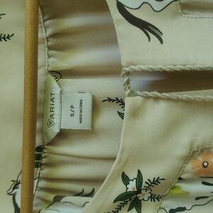 Ariat Beige Blouse with Cactus, Horses and Bull Design Light & Airy Sz. S Blouse