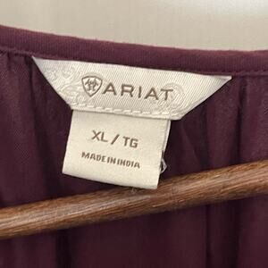 Ariat Bendi Peasant Top Burgundy Crochet Trim Boho Country Flowy Size XL