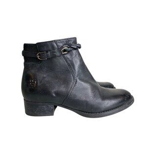 Ariat Black Leather Ankle Boots With Braided Strap Detail & Side Zipper Closure
