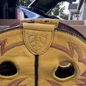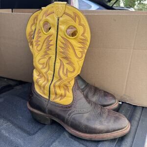 Ariat Boots Mens Size 10.5 D Brown Yellow Leather Western Cowboy Pull Holes ATS