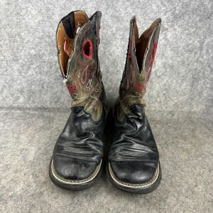 Ariat Boots Womens Size 7.5 B Black Red Western Cowboy Leather Work Style 16751
