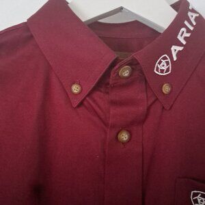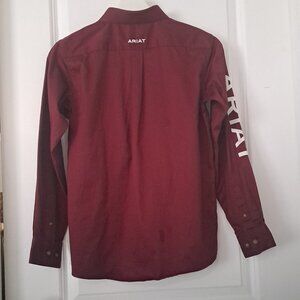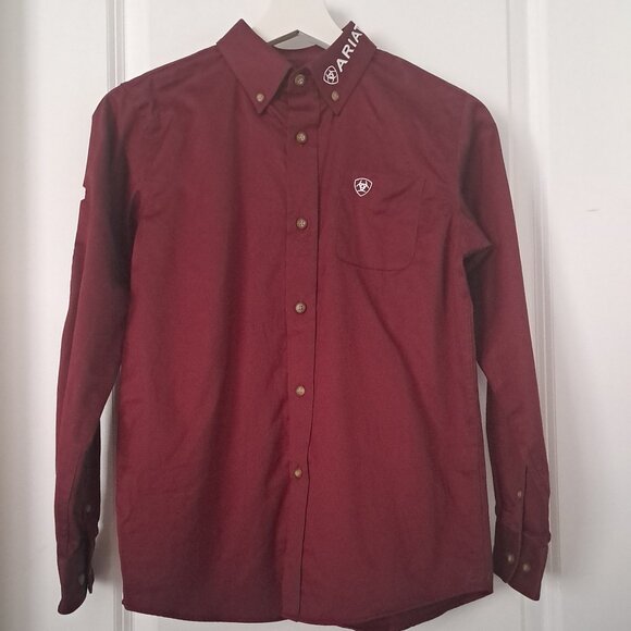 Ariat Boys Burgundy Team Logo Long Sleeve Western Shirt M 10-12