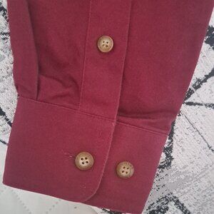 * # 392 * Color: Burgundy * Size: Medium 10-12 Height: 57", Chest: 28", Waist: 24:, Hip: 29", Sleeve Length; 25.2 * Fabric type: 100% Cotton * Closure type: Buttons * Solid Twill * Classic button down