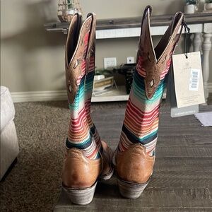Ariat Brown Cowboy Boot with Colorful Accent Pattern