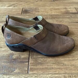 Ariat Brown Leather Paddock Clogs Booties Slip On Shoes Western Cowboy Size 8.5