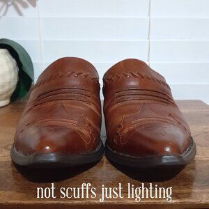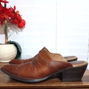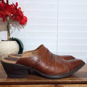 Ariat Brown Leather Pointy Toe Tooled Mules Women's sz 8.5B