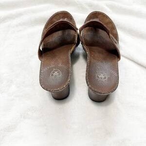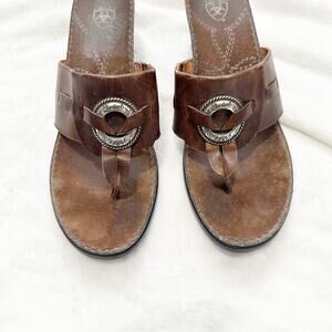 Ariat Brown Leather Sandals t strap with Silver Accent size 9 wedge cowgirl western country