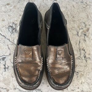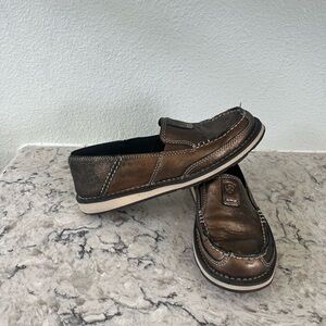 Experience the timeless elegance of Ariat's brown leather loafers, designed with a classic slip-on style for effortless wear. The moccasin-style construction and visible stitching add a touch of sophistication, while the weathered patina offers a vintage charm. Perfect for casual outings, these loafers combine comfort and style seamlessly.