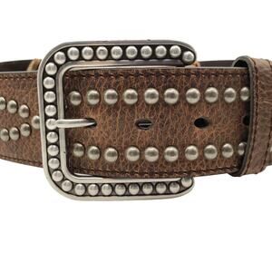 Ariat Brown Pebbled Leather Belt Gold & Silver Studded 36/90 Western Unisex