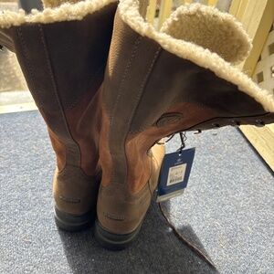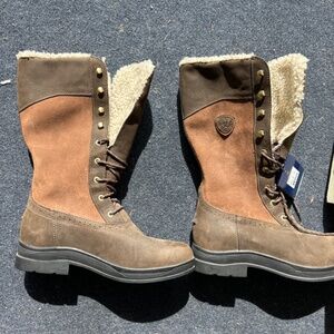 NWT size 10.5 USA brown riding Ariat boots in leather calfskin. Size 42 European, comes with tags attached. They are insulated boots with faux shearling. I think these retail for around $300. Selling for cheaper
