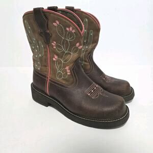 Ariat Brown and Cream Ankle Boots with Cactus Design Size 7 B