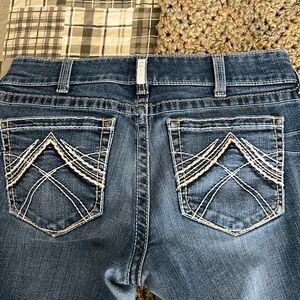 Stylish blue flare jeans by Ariat. Perfect for a chic look.