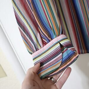 Ariat Colorful Striped Semi Sheer Button Up Shirt M Western Cowboy Boho Festival