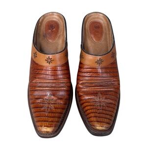 Ariat Desert Star Lizard Leather Clog Mules Size 7B Brown Block Heel Slip On