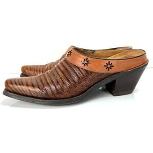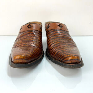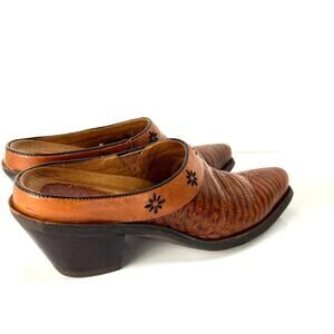 Ariat Desert Star Shoes Womens 7B Cognac Lizard Leather Mules Clogs 13397 Square Toe